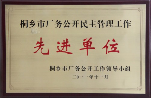 公司榮獲“桐鄉(xiāng)市廠務公開民主管理工作先進單位”稱號