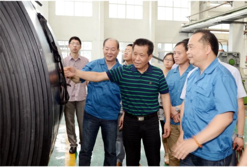 隨后,池曉明主席一行又參觀了公司鋼絲繩芯輸送帶車間,對公司的產(chǎn)品工藝流程、產(chǎn)品特性等有了更進一步的了解。
